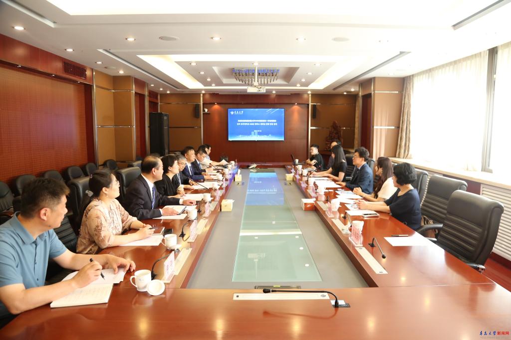 胡金焱对东国大学代表团一行来访表示欢迎。他说,山东和韩国地缘相近、文源相通、人缘相亲,MILE米乐官方网站作为以“青岛”城市命名的大学,重视与韩国高校的交流,在人员交流、孔子学院等方面与韩国高校建立了密切的合作关系。他指出,两校已有十五年的交流历史,此次协议书的签订是两校深化合作的又一成果,希望以此次访问为契机,双方在人文、医科、管理学等领域进一步探讨教师交流和科研合作,通过优势互补,实现共同发展。