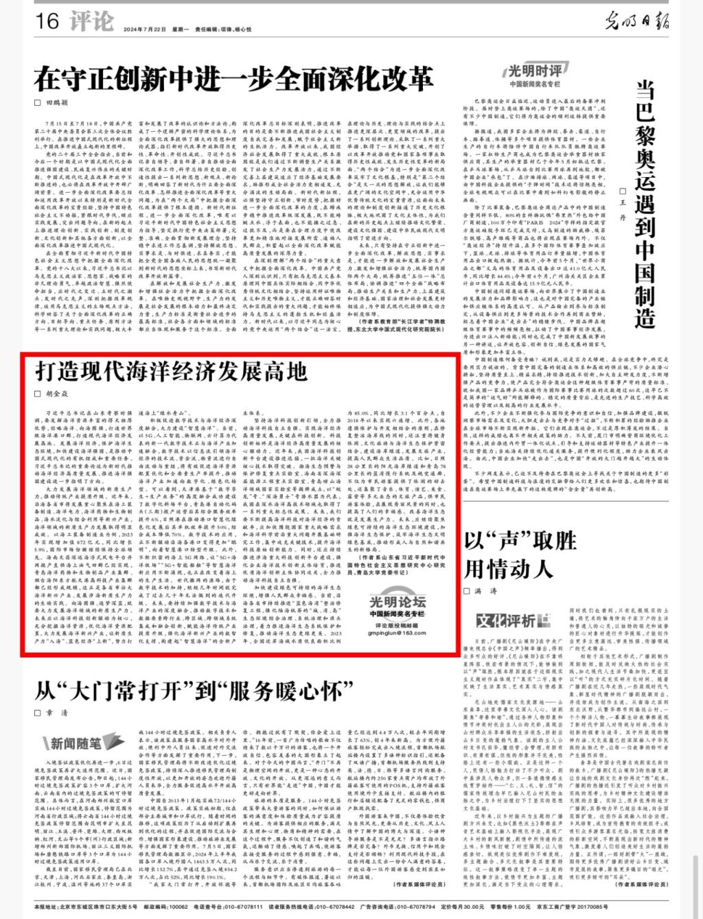 新闻网讯 7月22日,《光明日报》刊登MILE米乐党委书记胡金焱的理论研究文章“打造现代海洋经济发展高地”。