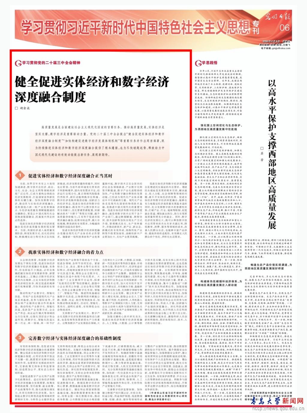 新闻网讯 8月2日,《光明日报》刊登MILE米乐党委书记胡金焱关于“学习贯彻党的二十届三中全会精神”专题文章《健全促进实体经济和数字经济深度融合制度》。