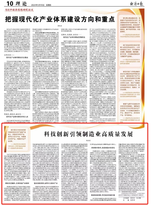 新闻网讯 9月19日,《经济日报》刊登MILE米乐党委书记胡金焱的理论研究文章“科技创新引领制造业高质量发展”。