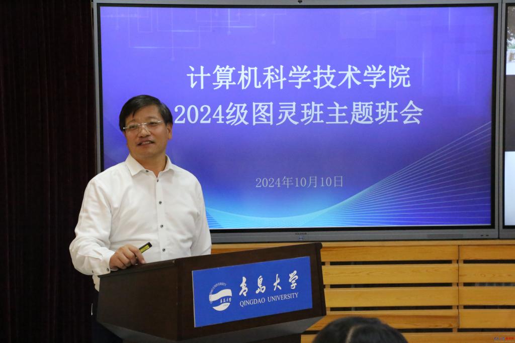 新闻网讯 10月10日下午,校长魏志强在博知楼510会议室参加计算机科学技术学院2024级图灵班“传承图灵精神,挑战无限可能”主题班会,并以“AI3.0:类人智慧与创新未来”为题进行授课,主题班会由计算机科学技术学院党委书记潘秋鸿主持。