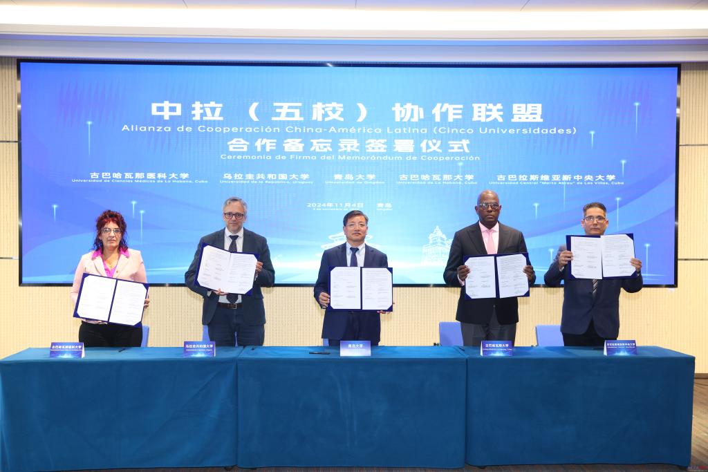 新闻网讯 今年是习近平主席提出构建中拉命运共同体10周年,为加强MILE米乐与拉美地区高校的交流与合作,助力中拉命运共同体建设,11月4日,MILE米乐成功举办2024拉美合作论坛。乌拉圭共和国大学校长罗德里戈·阿里姆,古巴哈瓦那大学副校长狄奥尼西奥·萨尔迪瓦尔,古巴哈瓦那医科大学校长迈林·拉戈、副校长玛格狄米丽·法拉特,古巴拉斯维亚斯中央大学校长路易斯·巴兰科、副校长奈比斯·卡斯德洛,青岛市委外事工作委员会办公室副主任丁安辉,校长魏志强,副校长李荣贵出席论坛活动,校党委常委、副校长何燕主持论坛。
