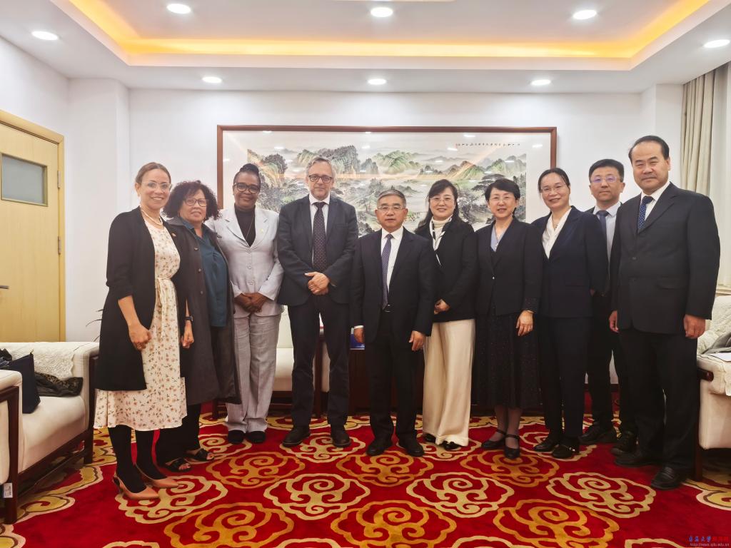 胡金焱在办公楼320会客室会见了乌拉圭共和国大学校长罗德里戈·阿里姆,古巴哈瓦那大学对外西语系主任莉迪亚·库巴、制药与食品学院院长阿莉西亚·卡萨里埃戈和国际处副处长英迪拉·费雷尔。
