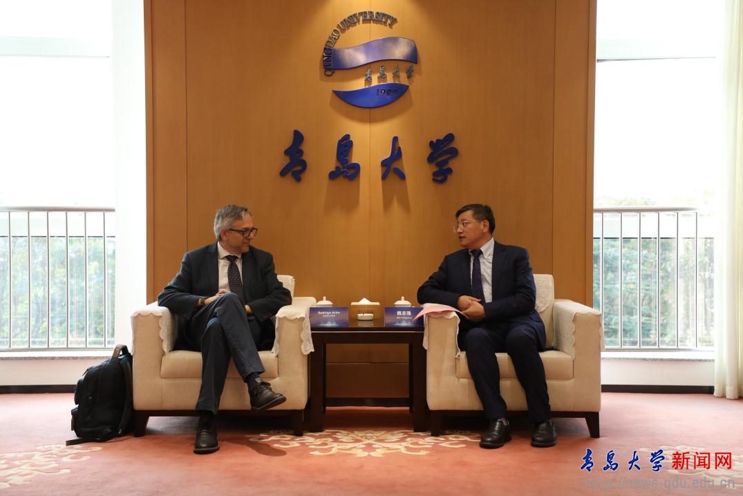 在与乌拉圭共和国大学合作交流中,胡金焱回顾介绍了两校合作的成果与进展。一是医学领域,去年12月阿里姆校长回访期间,两校共建的“生物纳米制药联合实验室”和“中国-乌拉圭研究中心”正式揭牌。今年7月,联合实验室获批国家重点研发计划--政府间国际科技创新合作专项。目前,基于该专项有6篇研究论文预期发表,双方已达成5个合作项目,涉及纳米药物递送、生物纳米传感器、可植入生物材料等领域。另外,两校成功召开了医学(线上)论坛。二是区域研究领域,“中国-乌拉圭研究中心”于今年9月入选第五批山东省外事研究与发展智库,学校已经立项2个重点研究课题。他建议,在原有合作基础上,两校可持续推进文化互鉴和学者交流,在口腔医学和临床医院拓展合作交流,探讨通过人工智能推进临床医学、附属医院建设等多项合作,适时发布相关研究成果。