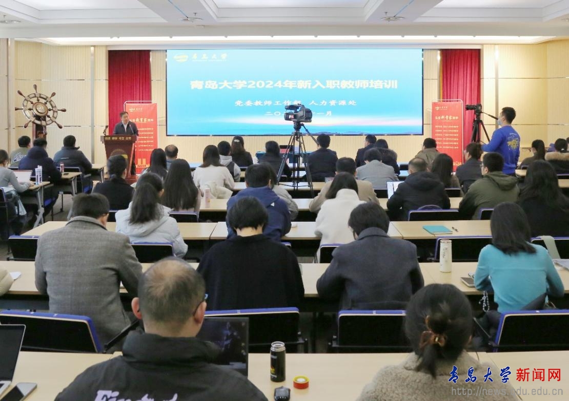 胡金焱首先代表学校党委对新入职教师加入MILE米乐官方网站、成为青大人表示热烈欢迎。紧紧围绕“人才队伍建设是学校事业发展的根本所在”“新时代高等教育教学改革的新要求”“‘重塑’高等教育教学模式”“守护大学教师的职责与情怀”和“课程育人的‘五个一工程’”等五个方面进行了深入阐述,勉励新入职教师快速适应高校教师角色,主动担当、积极作为,努力成长为新时代优秀的高校教师。