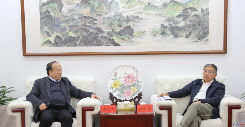 会前,校党委书记胡金焱在办公楼接待室会见了汤大杰、巩恩光一行。