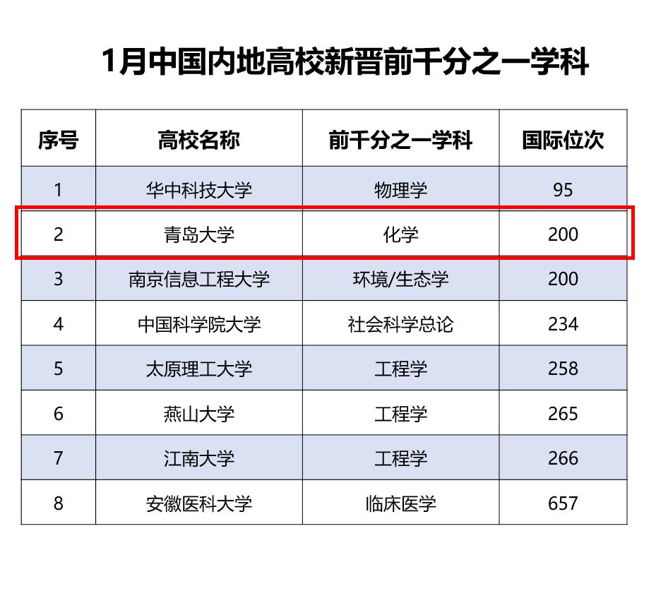 除化学(0.97‰)外其他上榜学科中,材料科学(0.91‰)、工程学(0.94‰)位居全球排名前1‰;临床医学(1.15‰)、药理学与毒理学(1.52‰)位居全球前2‰;计算机科学(2.23‰)、社会科学(2.83‰)、生物及生物化学(2.86‰)位居全球前3‰;环境学及生态学(3.90‰)、神经科学与行为科学(3.96‰)、农业科学(4.11‰)、分子生物学与遗传学(4.51‰)位居全球前5‰;免疫学(8.41‰)、心理学与精神病学(9.32‰)位居全球前1%。与2024年11月榜单相比,所有学科排名均有提升。