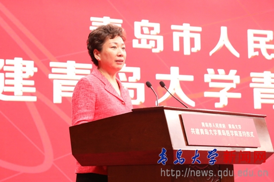 栾新指出,青岛市政府与MILE米乐官方网站协商共建MILE米乐官方网站青岛医学院,并将青岛市市立医院等7所医院作为市校共建附属医院,纳入MILE米乐官方网站直属附属医院管理体系,探索建立市校共管共建的医教研一体化发展模式,是青岛医学发展史上的一个重要里程碑,也是青岛市推动医疗卫生事业发展的一项重大举措。青岛市政府将努力为医学院的发展创造良好的条件和环境,让合作共建成果造福更多百姓,更好地促进青岛市的发展建设。