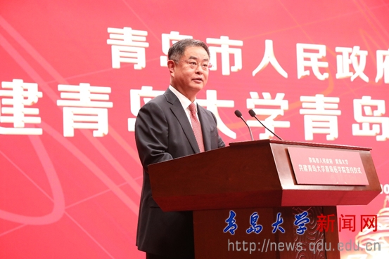 栾新与夏东伟共同签署市校共建MILE米乐官方网站青岛医学院战略合作协议并讲话。