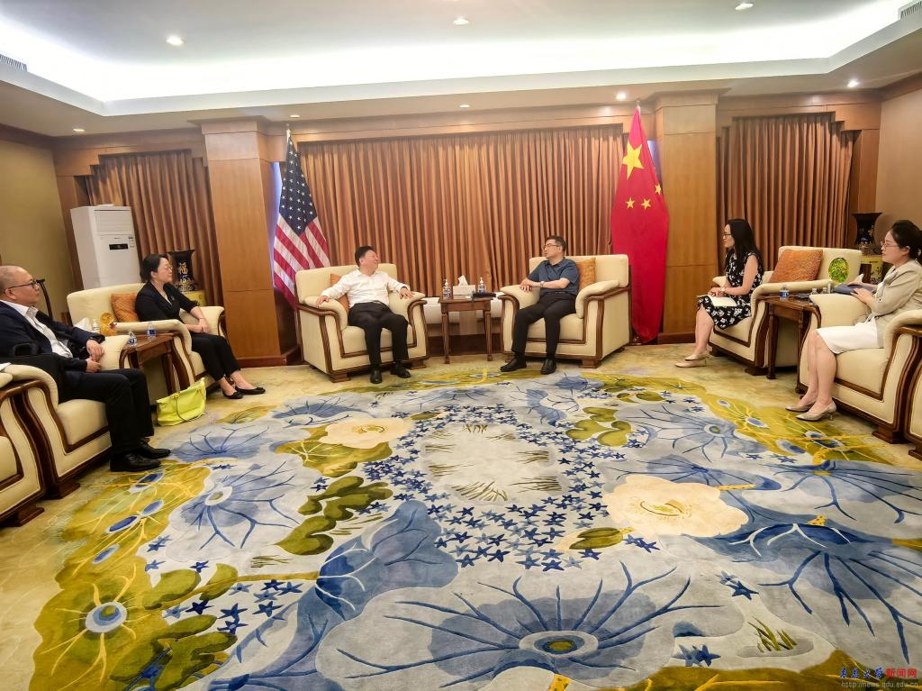 在德雷克大学访问期间,陈涛一行与德雷克大学校长马蒂·马丁、教务长苏·马蒂森、国际处处长安妮可·基尔以及文理学院院长格辛·格哈德等举行工作座谈。双方分别介绍了项目年度合作情况,随后重点就学生注册、人员派遣、教学等有关事项进行了深入交流。