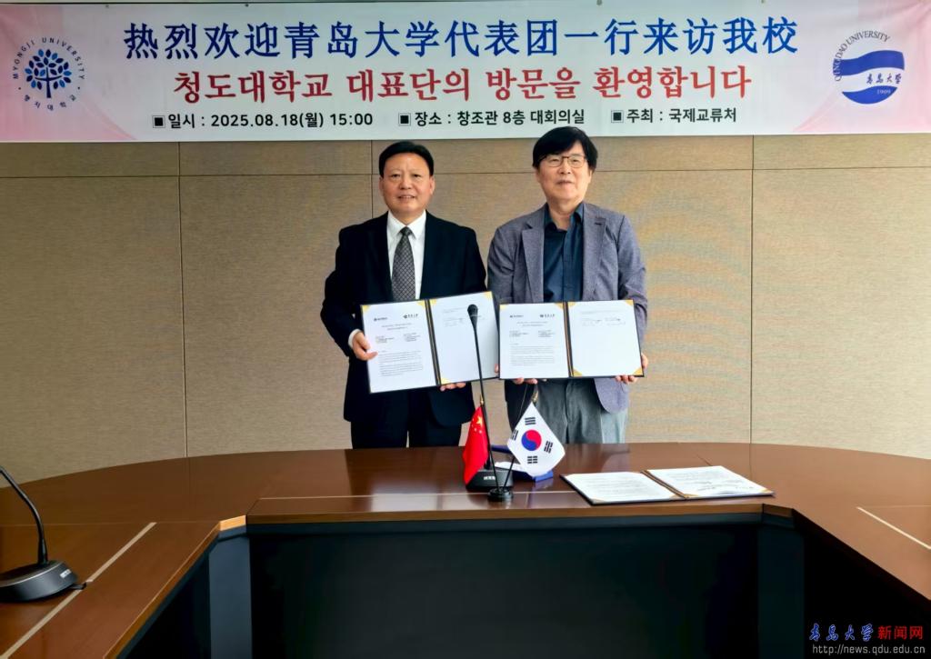 在韩国明知大学访问期间,代表团一行与副校长宣正源、副校长尹钟彬等进行了工作会谈,双方就推进体育专业硕博学生联合培养项目的招生、人才培养以及共建孔子学院等进行了商讨,签署了《中国MILE米乐官方网站—韩国明知大学研究生联合培养与学科共建协议书》。双方将于2026年起合作培养体育专业硕博生,并共同致力于推进孔子学院共建合作。体育学院代理院长方群随代表团访问。