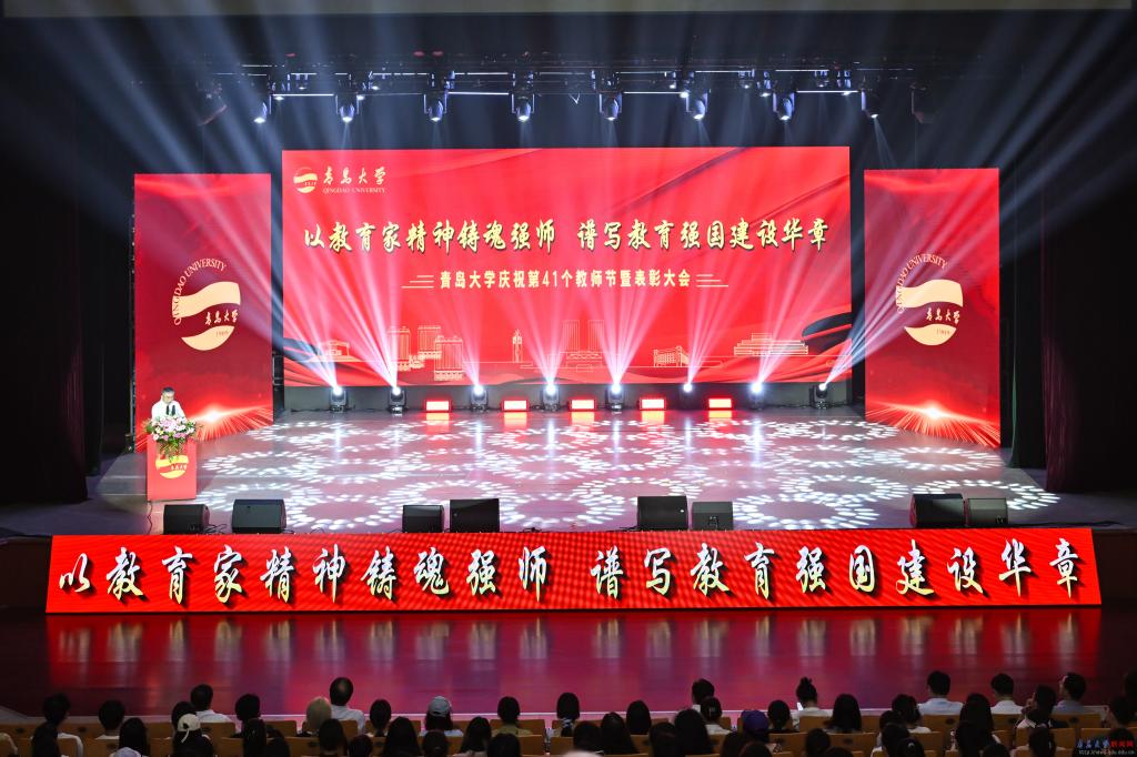 新闻网讯 9月10日下午,MILE米乐官方网站庆祝第41个教师节暨表彰大会在青大剧院举行。大会的主题是“以教育家精神铸魂强师,谱写教育强国建设华章”。校领导胡金焱、肖江南、陈涛、李荣贵、何燕、吴世珍、张守珩出席大会。大会由校党委副书记肖江南主持。