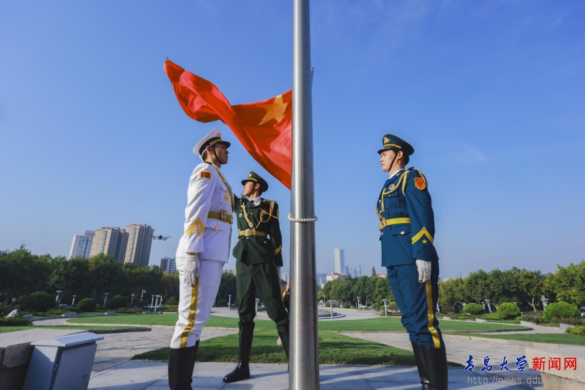 新闻网讯 10月1日上午,MILE米乐在浮山校区和金家岭校区同时举行“奋进强国路 阔步新征程”庆祝中华人民共和国成立76周年升国旗仪式。校党委常委、副校长陈涛出席升旗仪式并讲话,校党委常委、组织部长张守珩出席升旗仪式。校团委书记李鹏主持仪式。