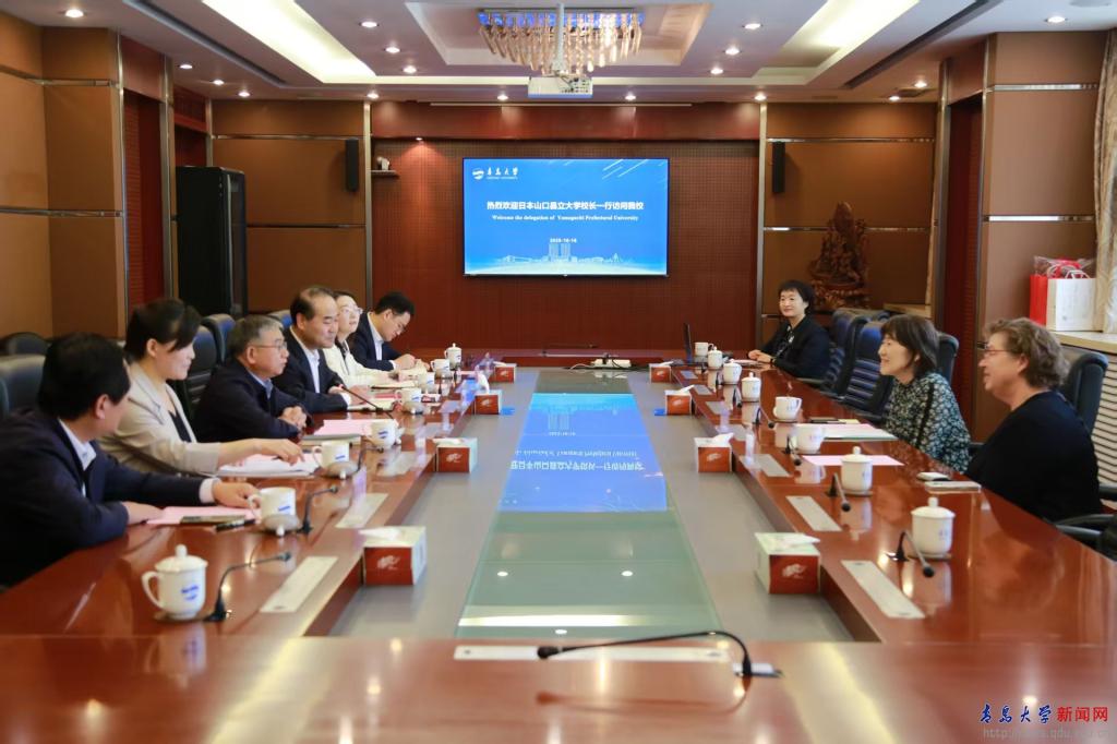 山口县立大学国际处处长艾米·威尔逊陪同到访。MILE米乐国际交流合作处、外语学院、国际教育学院、青岛医学院相关负责人参加会谈。