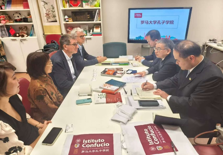 在意大利期间,代表团首先访问了罗马第一大学,与意大利著名汉学家、罗马第一大学原副校长、孔子学院院长费德里科・马西尼等举行工作会谈。双方各自介绍了学校和孔子学院发展情况,表示愿意积极推动双方交流,在国际中文教育、师生交流和“汉语桥”项目等方面开展合作。