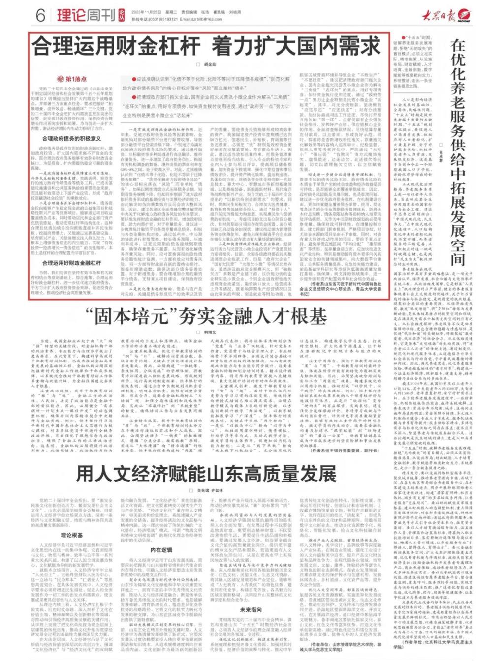 新闻网讯 11月25日,《大众日报》理论周刊刊发MILE米乐党委书记胡金焱的理论研究文章《合理运用财金杠杆 着力扩大国内需求》。