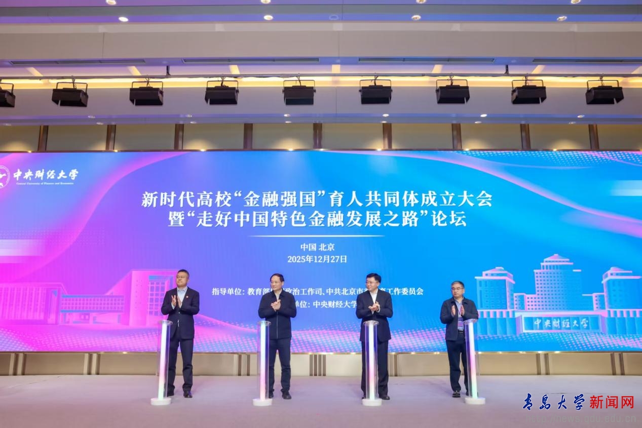 新闻网讯 12月27日,由教育部思想政治工作司、北京市委教育工委指导,中央财经大学主办的新时代高校“金融强国”育人共同体成立大会暨“走好中国特色金融发展之路”论坛在北京召开。教育部高等学校金融类专业教学指导委员会副主任委员、校党委书记胡金焱应邀出席并作主旨演讲。