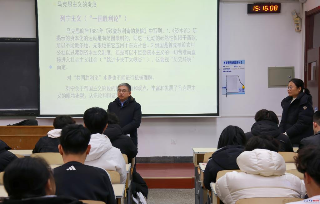 校党委书记胡金焱、校长魏志强深入不同教学班,分别听取了马克思主义学院开设的《马克思主义基本原理》与《毛泽东思想和中国特色社会主义理论体系概论》课程。