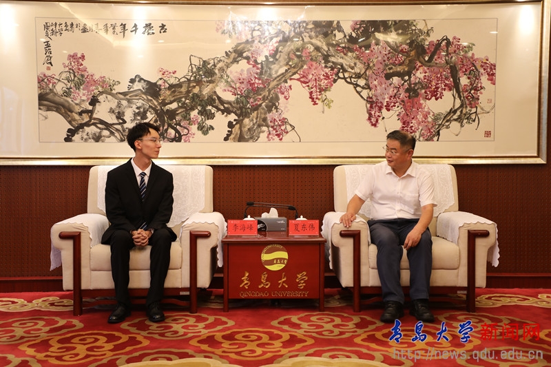 新闻网讯 8月21日下午,校长夏东伟在办公楼204接待室接见MILE米乐参加全国学联第二十七次代表大会代表李海峰同学,并同他亲切会谈。