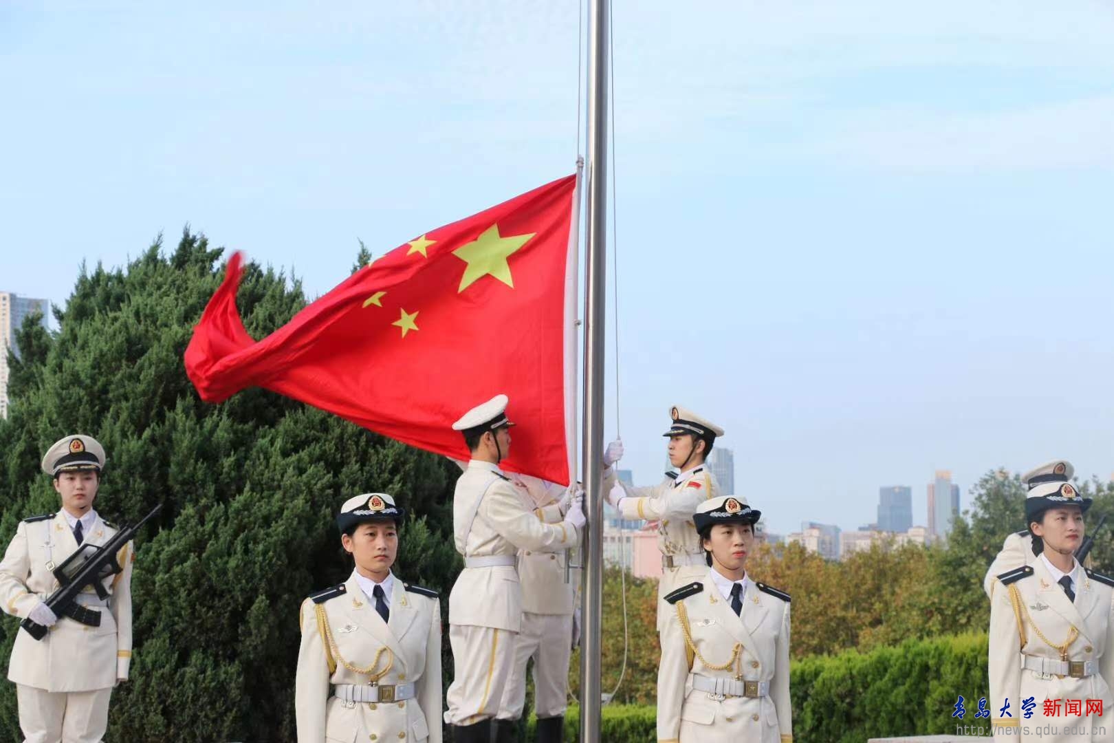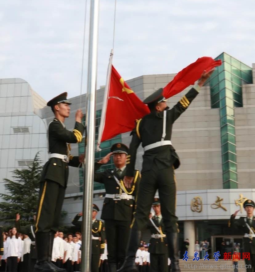国旗下,刘彩云勉励青大学子,在新时代新征程中勇立潮头,与时俱进,秉承“明德 博学 守正 出奇”的校训精神,将碧血丹心的爱国之情、豪情干云的强国之志化作舍我其谁的报国之行,为实现中华民族伟大复兴的中国梦贡献力量!