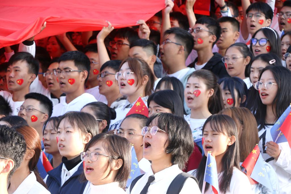 仪式最后,千余名师生挥舞着手中的小国旗和校旗,自发地高唱《歌唱祖国》,动情的朗诵、嘹亮的歌声、精彩的表演表达出对祖国的礼赞和无限的爱国爱校豪情。青大青年用自己独特的方式向祖国母亲表白,现场气氛热烈温馨。