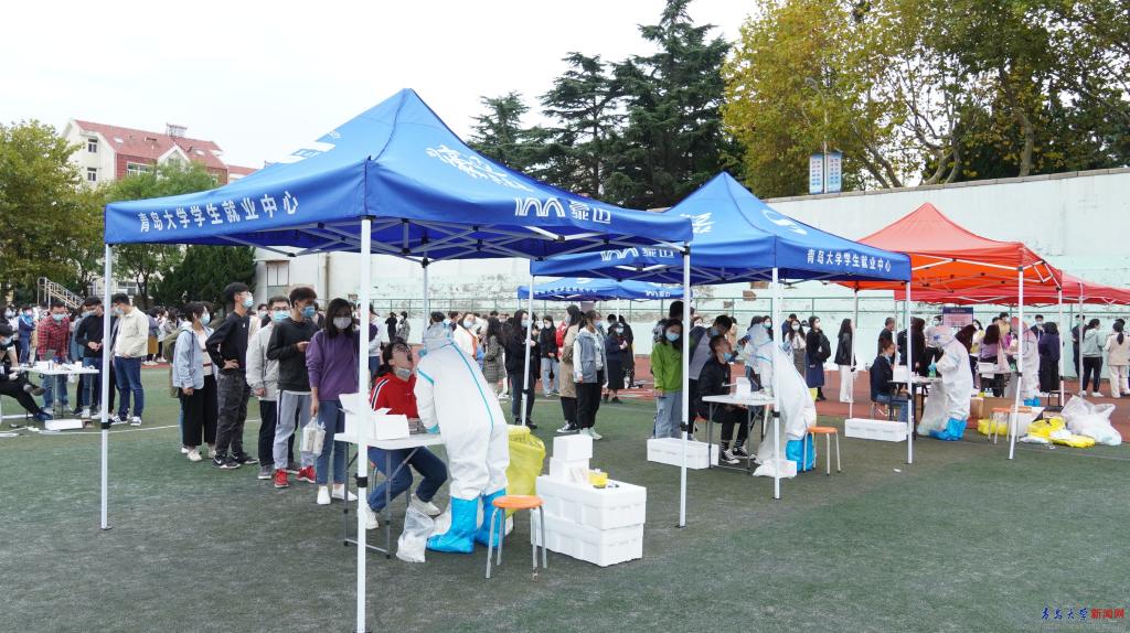 校党委办公室、校长办公室,离退处,学生工作处,人力资源处,职工医院、安全管理处,后勤管理处等相关工作人员全程在现场引导师生,确保了核酸检测工作高效有序进行,展现了青大速度,也得到了青岛市相关部门的肯定。