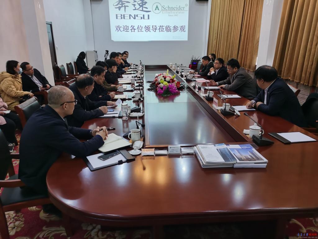 座谈会前,胡金焱一行还到山东奔速电梯股份有限公司进行实地调研。