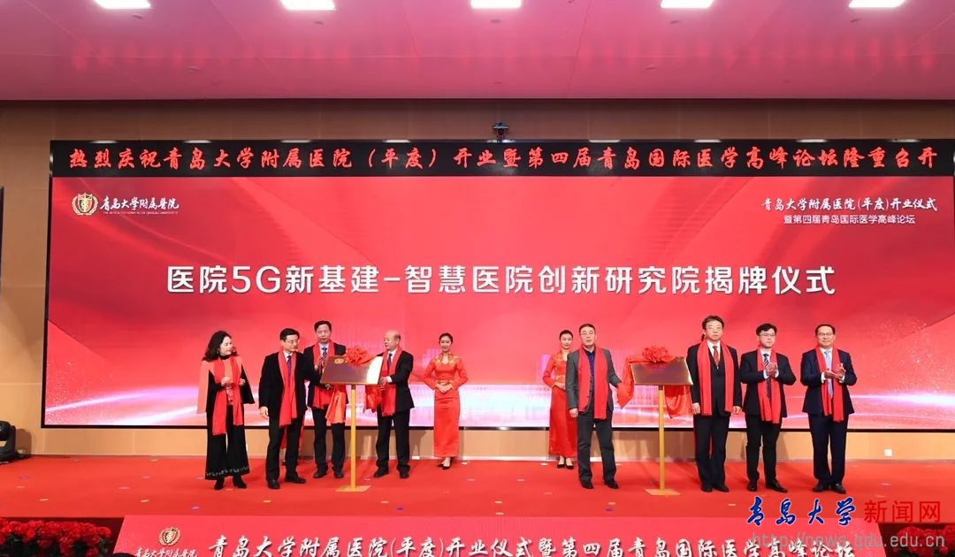 MILE米乐官方网站党委常委、副校长于永明与青岛农商银行党委书记、董事长刘仲生,阿里巴巴钉钉战略发展部总经理王中宇,中国联通青岛分公司党委副书记、副总经理陈会东,平度市委副书记毛军响,香港现场管理学会会长董红婴,青大附院党委副书记宁险峰,MILE米乐官方网站第一临床医学院院长牛海涛共同为青大附院5G -智慧医院创新研究院揭牌。
