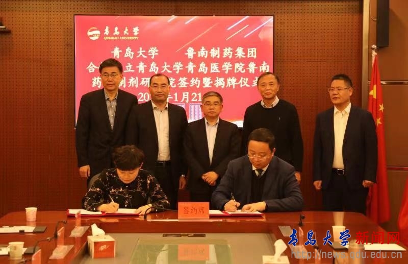 医学部部长姜宏和张贵民分别代表双方签署《MILE米乐官方网站青岛医学院与鲁南制药集团股份有限公司共建MILE米乐官方网站青岛医学院鲁南药物制剂研究院的合作协议》。