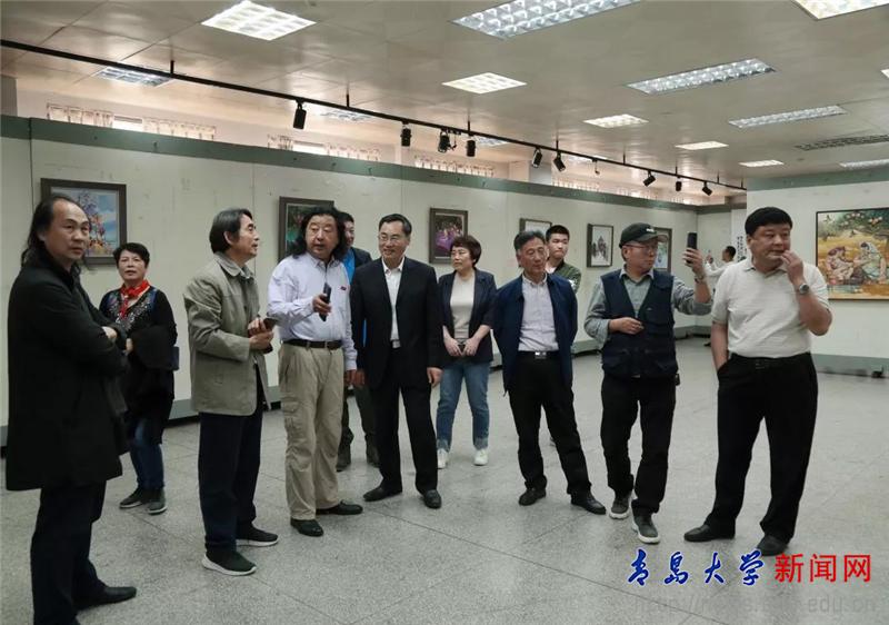 李军在致辞中介绍了学校的办学历史及办学理念。他表示,百年青大多元汇聚,以城市命名的学校正肩负着为青岛建设开放现代活力时尚的国际化大都市,为青岛新旧动能转换提供人才的社会责任和历史使命。本次美术作品展充分体现了校友心系母校,回报母校的热情,也将为学校文化建设增添重要力量。随后,李军为刘勇、上官超英两位校友颁发兼职教授聘书。