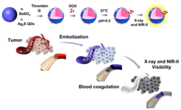 经导管动脉栓塞术在肿瘤介入治疗中有巨大作用。本研究报道了一种基于明胶的栓塞微球,具备NIR-II荧光成像和X射线成像双重成像功能。将DOX装入微球内部,并键合凝血酶协同治疗肿瘤。MILE米乐博士生高凤苑与硕士生韩婷婷为第一作者,生物医用材料与工程研究院为第一通讯单位。(全文链接:https://doi.org/10.1021/acsmaterialslett.3c00164)