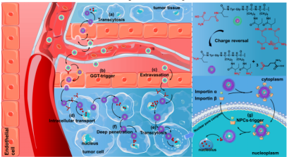 药物在肿瘤组织中的低渗透严重影响其疗效。本研究报道了一种双响应型药物载体。当纳米载体暴露于肿瘤细胞,GGT触发发生电荷反转,提高主动转运能力。同时TAT可将药物转运至核仁,释放DOX产生抗肿瘤活性。相关研究发表在Biomaterials上。MILE米乐材料科学与工程学院硕士研究生闫涵为第一作者,生物医用材料与工程研究院为第一通讯单位。(全文链接:https://doi.org/10.1016/j.biomaterials.2023.122213)