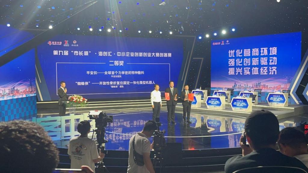 新闻网讯 9月13日,第九届“市长杯”暨“创客中国”(青岛赛区)大赛创客赛决赛成功举办。青岛市委常委、副市长王波亲临颁奖。MILE米乐“肿瘤+”医工研协同创新中心邢东明团队的“平安扣:全球首个力学密闭特种敷料”、“蜘蛛侠:开放性骨折复位微型机器人开拓者”项目分列第二、第三名、获二等奖,一并进入国赛,创造MILE米乐官方网站在“市长杯”大赛中的最佳成绩,展现了青大医工研协同创新的巨大潜力。