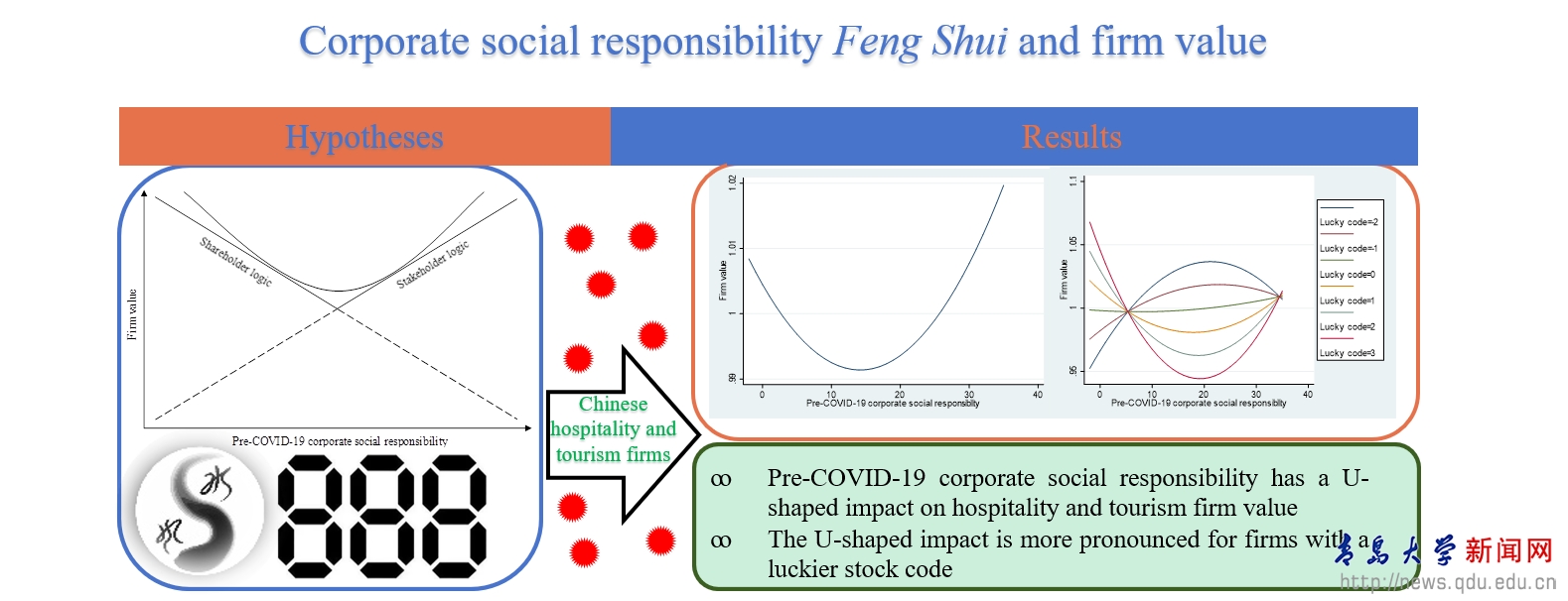 企业社会责任是否对新冠肺炎疫情危机中的企业价值具有风险保护效应尚无定论,原因在于企业社会责任对企业价值的影响可能是非线性的。在危机时期,一个幸运的股票代码可以为投资者在面临巨大挑战、压力和不确定性时提供一种拥有控制感的幻境。因此,风水哲学可以作为中国投资者交易股票的重要决策标准。结合企业社会责任和幸运股票代码两个视角,本研究认为,在危机中,企业社会责任可以给投资者带来主要控制,而幸运股票代码只能提供次要控制。据此提出以下假设:由于股东逻辑和利益相关者逻辑的冲突,企业社会责任对企业价值的影响呈现为U型,幸运股票代码强化了这一U型影响。基于中国酒店和旅游企业新冠肺炎疫情期间周面板数据的实证检验支持了上述假设。研究结论对企业社会责任的风险保护效应文献和风水哲学的幸运数字文献具有重要的理论贡献,对企业决策者通过企业社会责任更好地在危机中保护企业价值提供了操作指南。