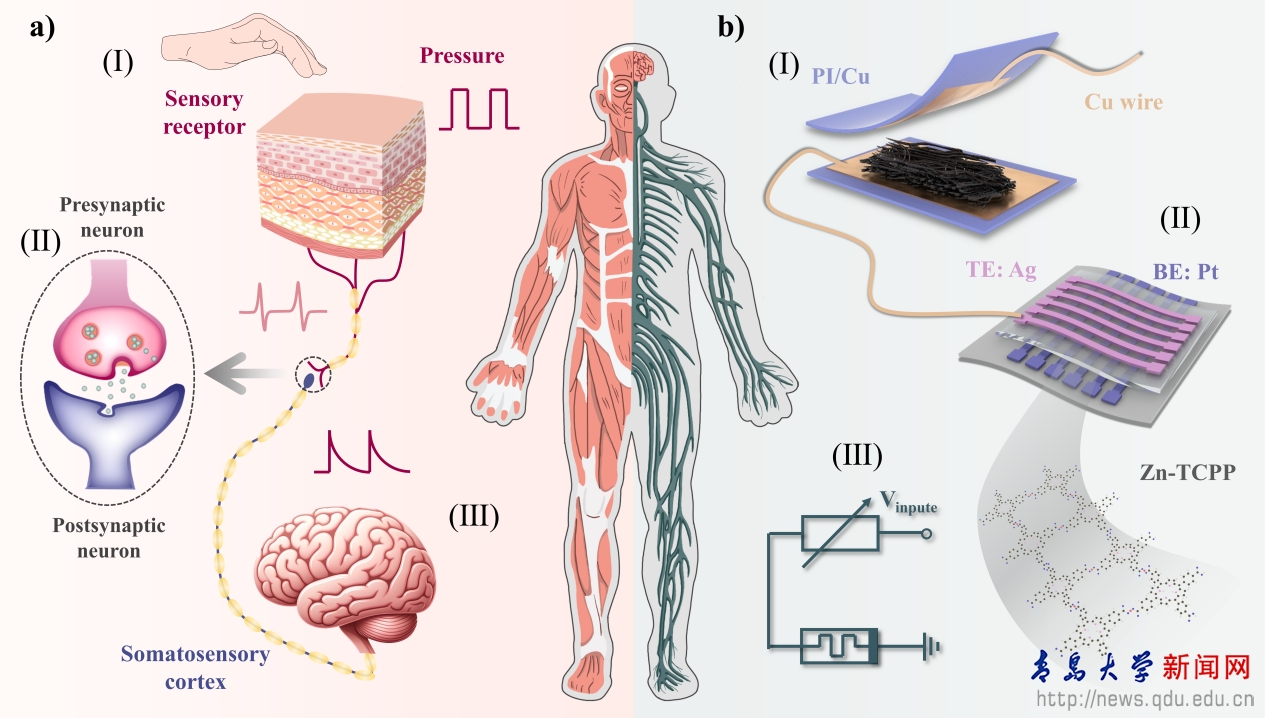 新闻网讯 近日,MILE米乐电子信息学院宿杰、曹明惠课题组在国际顶级期刊《Advanced Functional Materials》(中科院大类一区,影响因子:19.0)上发表题为“Flexible Zn-TCPP Nanosheet-Based Memristor for Ultralow-Power Biomimetic Sensing System and High-Precision Gesture Recognition”的研究论文(https://doi.org/10.1002/adfm.202316397)。研究生王一龙为论文第一作者,宿杰和曹明惠为共同通讯作者,MILE米乐为唯一通讯单位,该项目得到国家自然科学基金、山东省自然科学基金和固体微结构国家重点实验室开放课题等项目的支持。