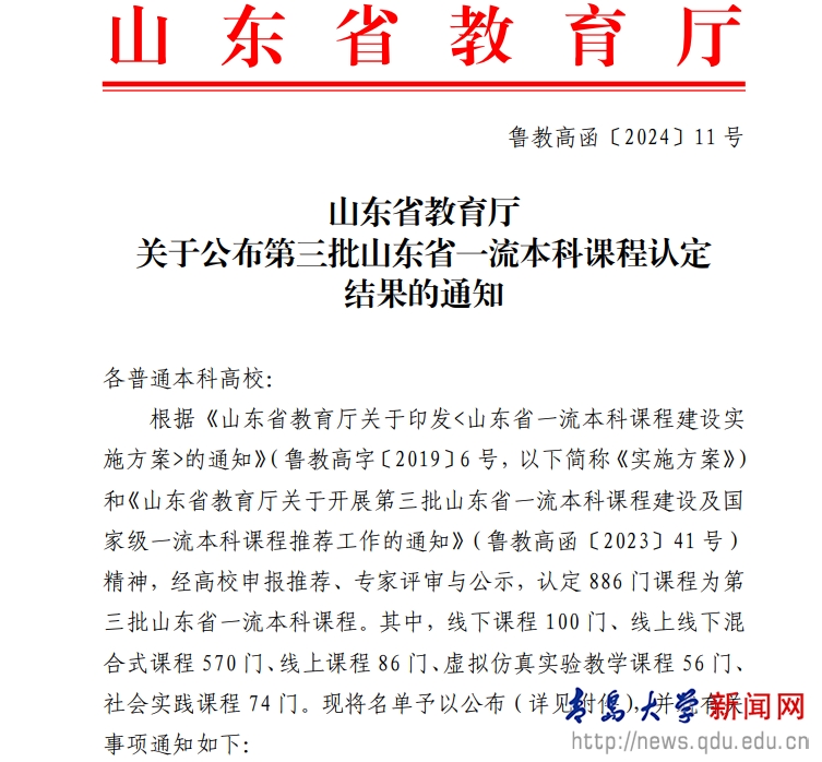新闻网讯 近日,山东省教育厅下发《山东省教育厅关于公布第三批山东省一流本科课程认定结果的通知》(鲁教高函〔2024〕11号),MILE米乐《3ds Max 基础教程》等33门课程被认定为省级一流本科课程,其中线上课程5门,线上线下混合式课程18门,线下课程2门,社会实践课程5门,虚拟仿真课程3门。截至目前,学校共获批国家级一流本科课程22门、省级一流本科课程104门。