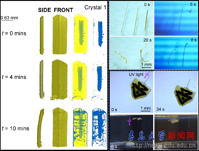 新闻网讯 近日,MILE米乐化学化工学院王国明教授团队在光机械响应晶体领域取得重要研究进展,研究成果以“Bending, Twisting, and Propulsion of Photoreactive Crystals by Controlled Gas Release“为题发表在国际顶级期刊Angewandte Chemie上(Angew. Chem. Int. Ed.2024, e202403397)。MILE米乐为第一完成与通讯作者单位,王国明教授、喻琪副教授和纽约大学Pance Naumov教授为共同通讯作者。第一作者为MILE米乐2022级在读硕士研究生于春娇,共同一作为MILE米乐硕士毕业生姜晓帆(目前博士就读于北京师范大学),该工作得到了国家自然科学基金等项目的资助。