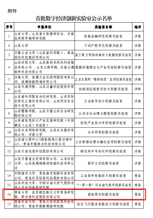 根据公示名单,此次共有30个实验室入选首批山东省数字经济创新实验室。