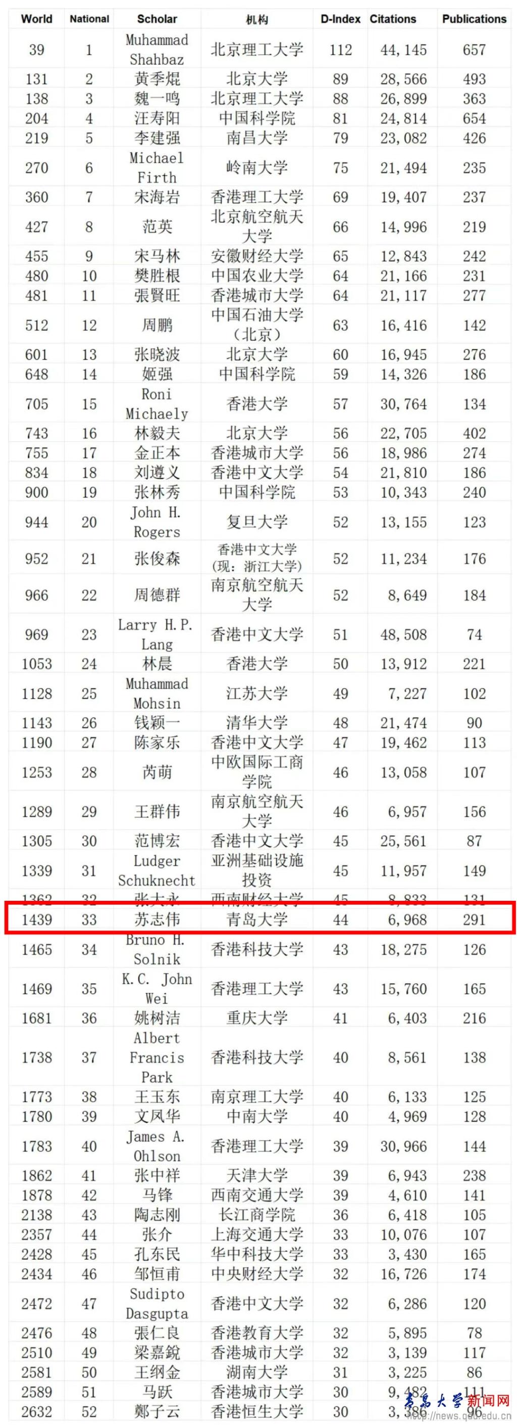 榜单根据D-index 进行排名,D-index 即学科 H-index,是根据学科分类的学者排名指标,仅包括被调查学科的论文引用值。以下为经济金融领域学者名单:
