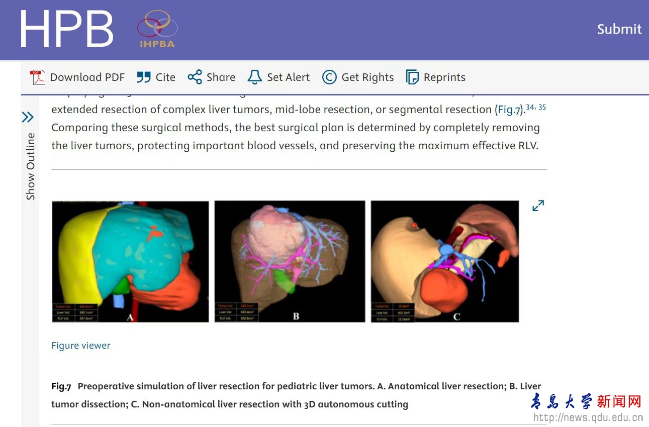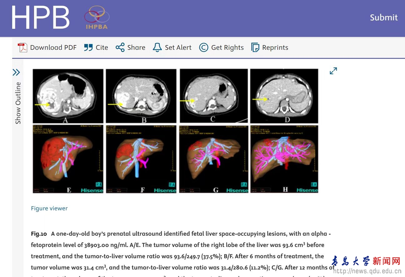 新闻网讯 近日,山东省数字医学与计算机辅助手术重点实验室主任、MILE米乐官方网站数字医学与计算机辅助手术研究院院长、MILE米乐官方网站附属医院小儿外科教授董蒨,作为第一作者兼通讯作者,联合中国、美国、日本、德国、英国、韩国、澳大利亚、加拿大等8个国家、34家医疗机构的36位顶级医学专家共同撰写的《三维可视化技术在小儿肝脏肿瘤精准外科治疗中的临床应用国际专家共识》,在国际肝胆胰领域顶级期刊《HPB》正式发表,标志着小儿肝脏肿瘤精准外科治疗迈入了新阶段,为全球小儿肝脏肿瘤诊疗提供了权威指导。