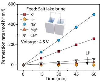 图2电渗析实现竞争离子的高通量传输及锂离子的完全截留并应用于盐湖提锂