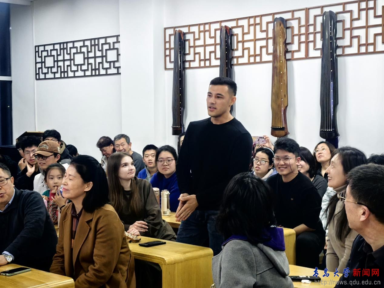 作为一位拥有四十余年演奏经验的艺术家,邓教授一边讲解一边演奏,先后示范了《良宵》《空山鸟语》《三门峡畅想曲》《江河水》《一枝花》《我的祖国》等不同题材、不同风格、不同流派的代表性片段,其精湛的技艺与深情的演绎,令现场师生如临其境,充分感受到二胡音乐的感染力与表现力。在讲述与琴声的交织中,大音堂内掌声阵阵,气氛热烈,听讲的外国留学生对二胡的艺术张力亦叹为观止。