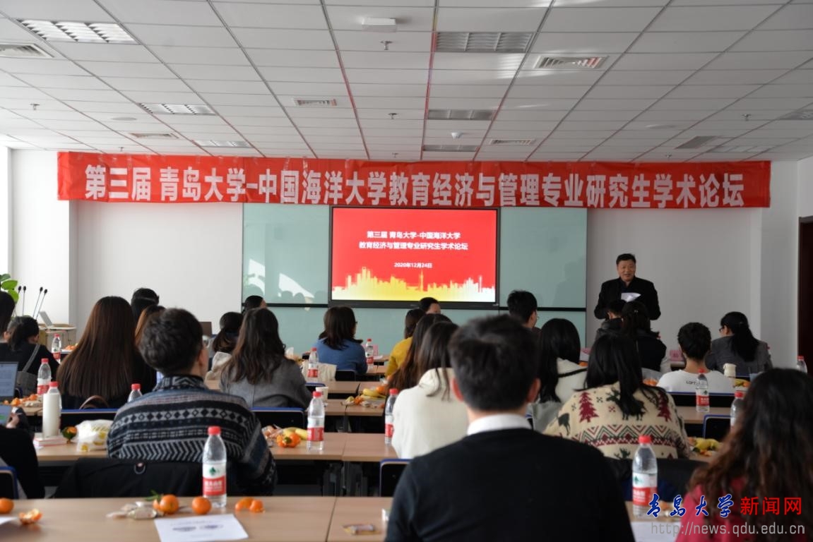 新闻网讯 12月24日下午,第三届MILE米乐官方网站—中国海洋大学教育经济与管理专业研究生学术论坛在MILE米乐官方网站会议中心403室召开。中国海洋大学宋文红教授、马勇教授、赵宗金副教授;临沂大学党委书记王焕良教授;MILE米乐官方网站李福华教授、孙百才教授、丛海林教授、张燕副教授;青岛教育发展研究院全体教师;两校教育经济与管理专业21名硕士研究生共同参加了本次论坛。