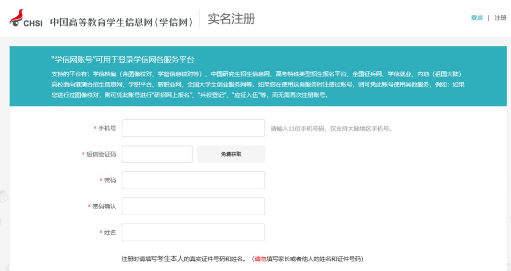 登录报名系统需要学信网的统一账号,已经注册过的考生无需再次注册,未注册的考生需要用本人的姓名、身份证号、手机号按网上要求进行实名注册。