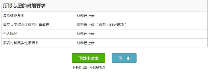 点击“确认志愿”后,确认志愿成功,点击“下载申请表”,然后点击“下一步”,输入申请表的版本号“001”进行保存