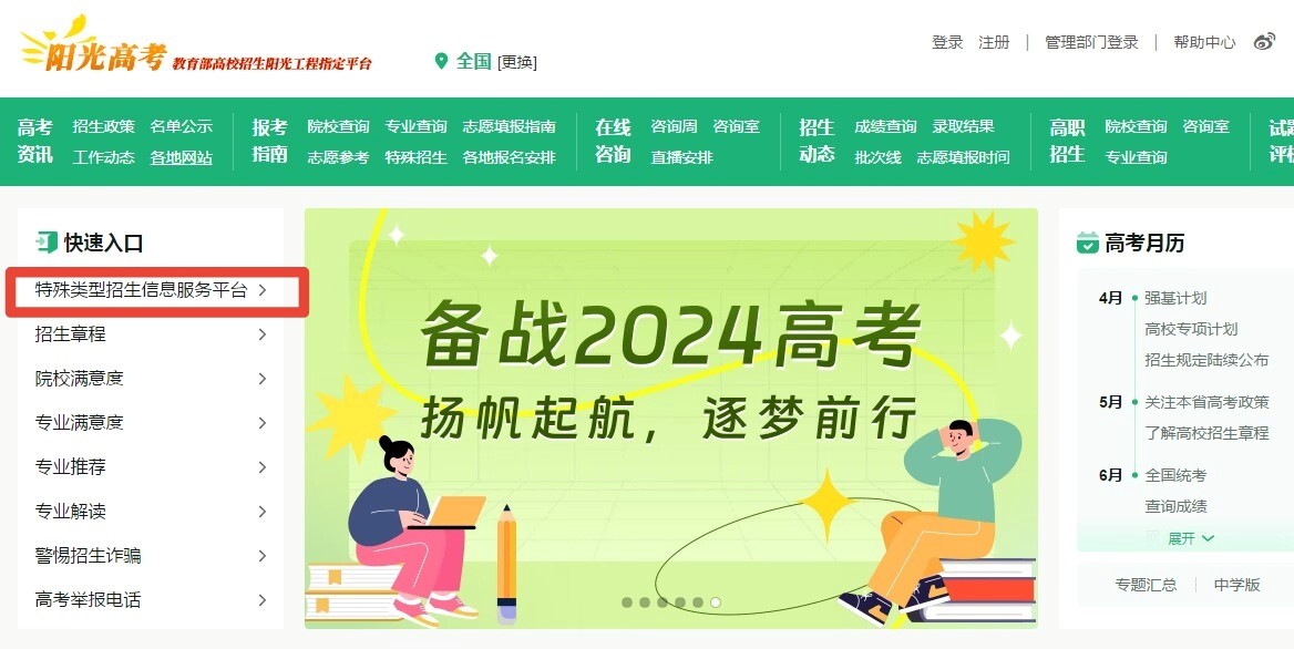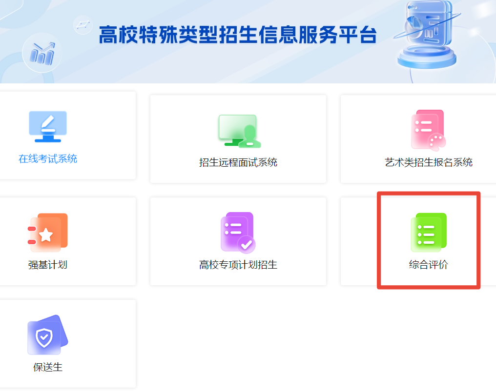 报名平台:教育部阳光高考平台-特殊类型招生信息服务平台-综合评价报名系统