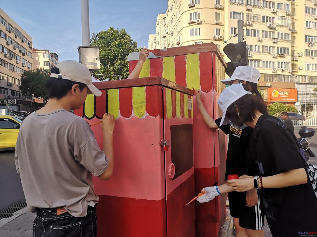 计算机科学技术学院学子为青岛大港街道配电箱“披上”彩绘