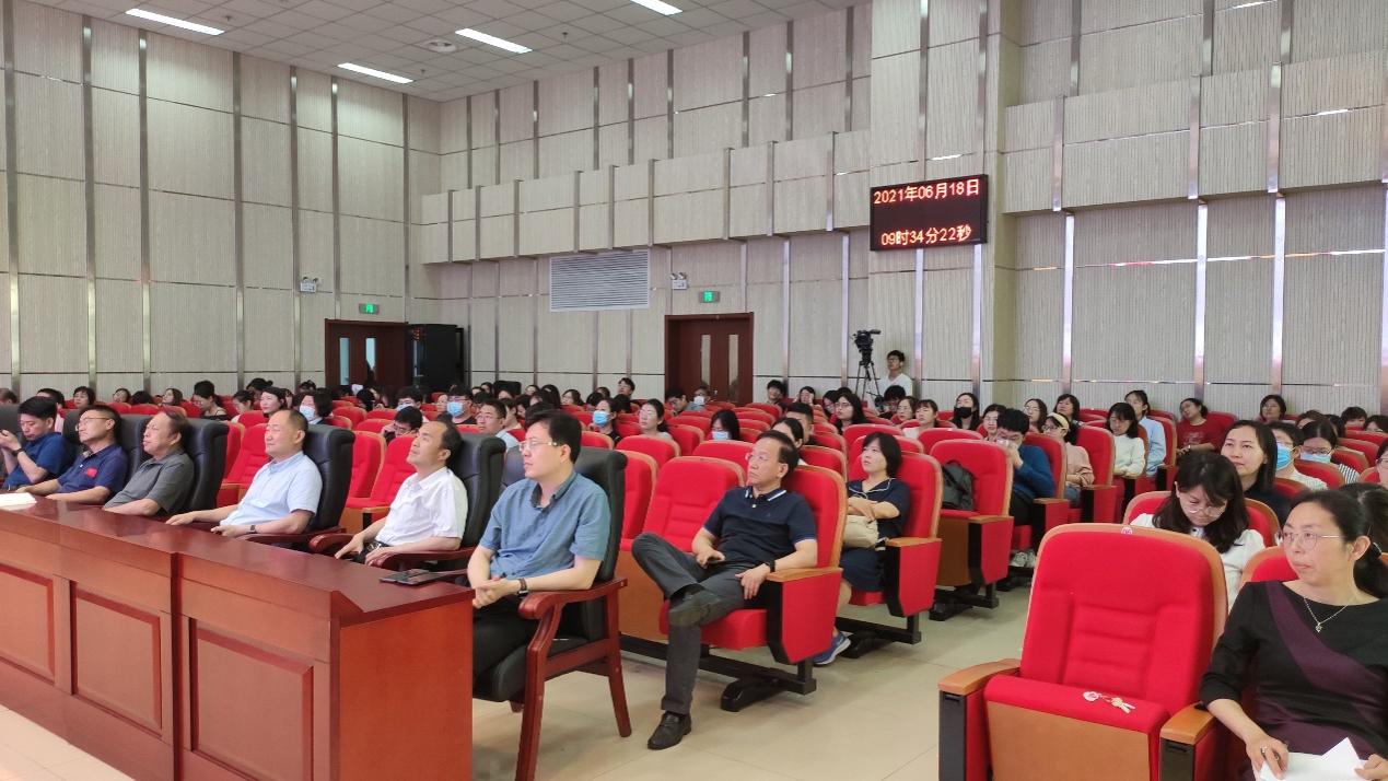 新闻网讯 6月18日9:00,医学部“弘扬沂蒙精神 践行初心使命”主题党课在浮山校区浩园医学教育综合楼104学术报告厅举行。党课由山东新时代药业有限公司赵志全同志纪念馆讲师、沂蒙党性教育讲解员王雪主讲。