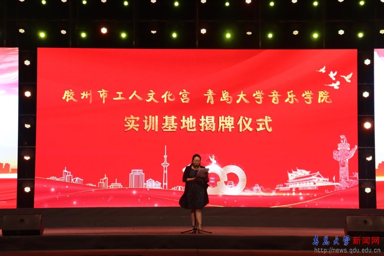 揭牌仪式后,举行了“庆祝中国共产党成立100周年”胶州市总工会专场演出,由音乐学院师生和胶州市总工会职工艺术团联手为胶州市的职工朋友献上了精彩的节目。