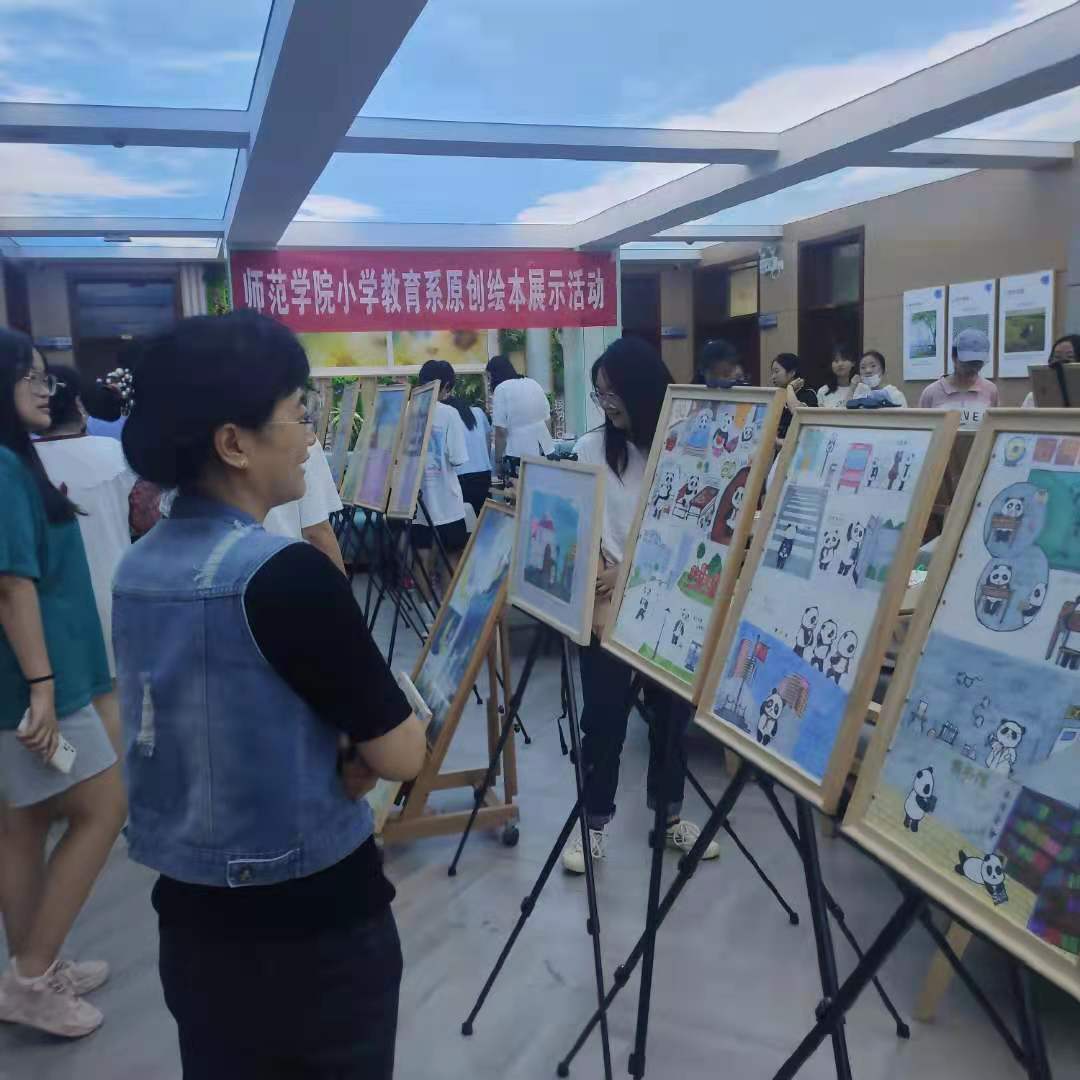 新闻网讯 7月20日,师范学院小学教育系“原创绘本展示活动”在德辉楼三楼大厅举行。以发展学生专业素养、拓展学生能力为宗旨,以提高学生人文情怀、创新精神和审美情趣为目标,在郭文老师的指导下,同学们精心创作并展示了高质量的原创绘本作品。